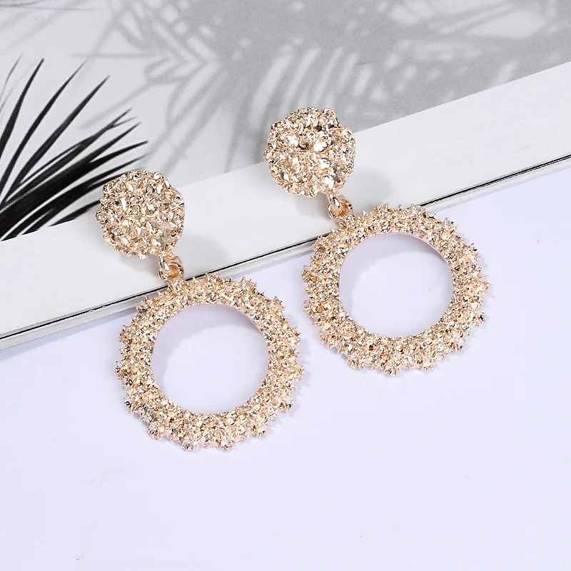 Женские массивные серьги большие винтажные геометрические золотого цвета