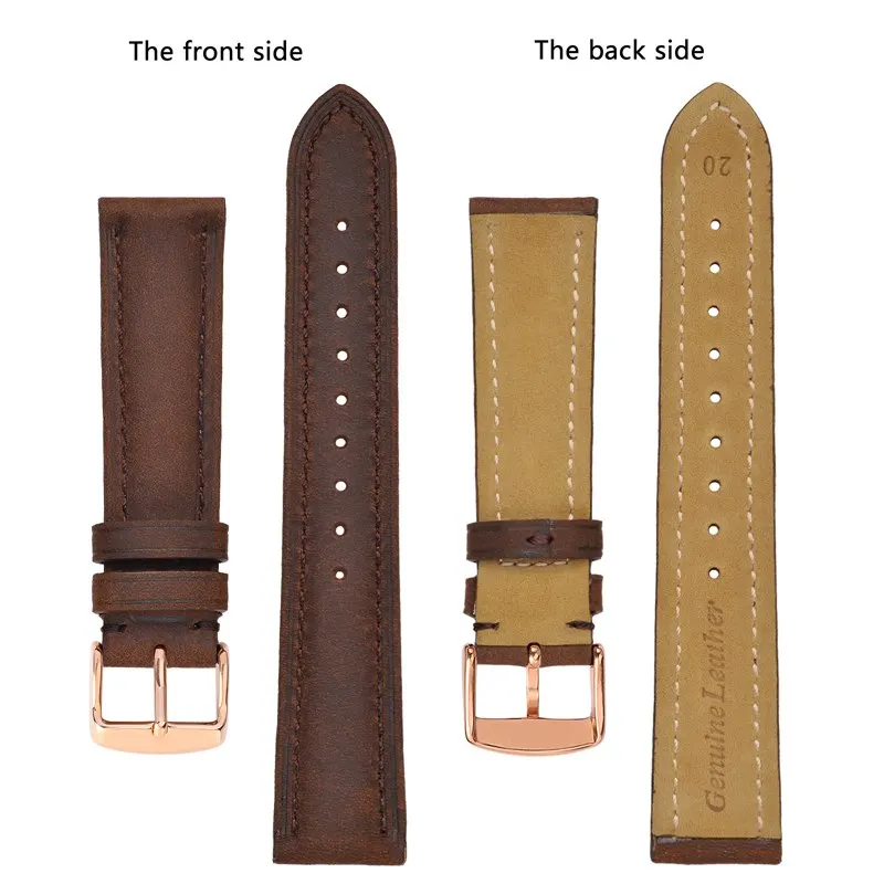 1.High Quality: Made of premium crazy horse leather(front)+suede leather(back), this watch strap is durable, soft and comfortable for wearing a long time.
