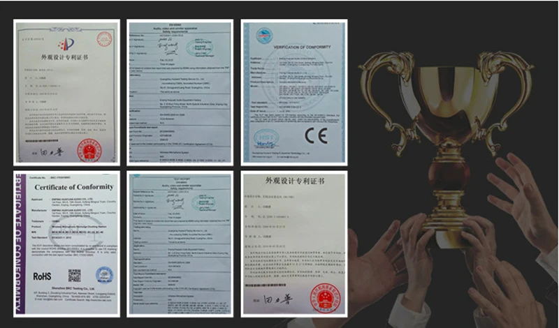 ПередатчикРабочая частота:863 мгц-865 МГцУправление ЦПС комбинированной технологией PLL, функцией ACTIRfunctionС 32/64/99 каналами для бесплатного выбора и ЖК-дисплеемСтабильность частоты: ± 0.002%С максимальной частотой регулировки FM: ± 45 кГцПредварительный потепление дисплея для слабой батареиАудио частотная характеристика компрессия и автоматический контроль уровня электричестваИсточник питания: 2 * батарейки типа АА, время работы в режиме ожидания: около 8 часовПриемникРабочая частота:863 мгц-865 МГцУправление ЦПС комбинированной технологией PLL, функцией ACTIRfunctionС 32/64 каналами для бесплатного выбора и ЖК-дисплеемСтабильность частоты: ± 0.002%Блокировка шума + Блокировка тона пилотаЗвуковая частотная характеристика разворачивается и автоматическое управление уровнем электричестваПриемник истинного разнообразияРабочее расстояние: 60-100 метровИзображение продукта:Смотрите так же другие товары: