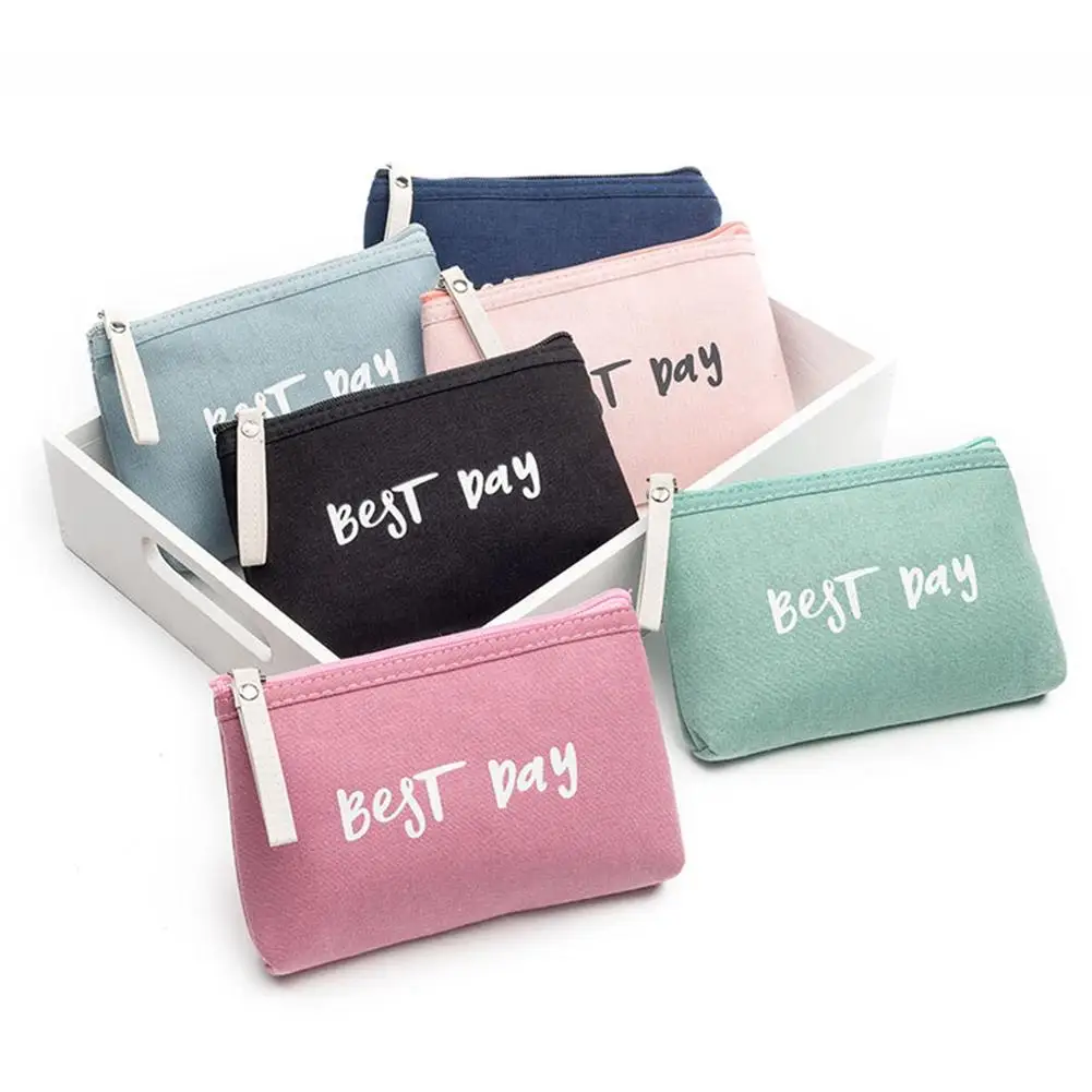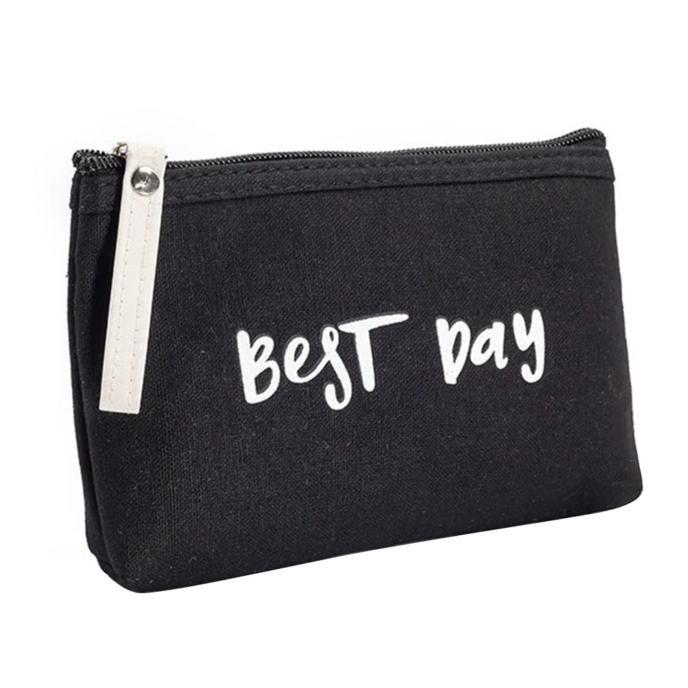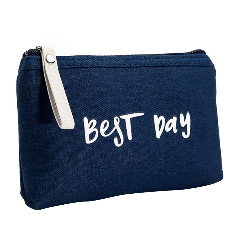 Лучший день с буквенным принтом Сплошной цвет холст женская сумка для хранения дорожная косметичка
