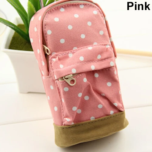 Особенности: застежка-молния, стиль рюкзака, узор в горошек, застежка-крючок, канцелярские принадлежности