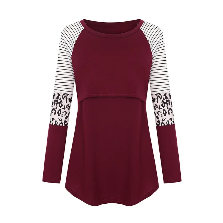 Футболка для кормящих женщин с леопардовым принтом и круглым вырезом полосатая