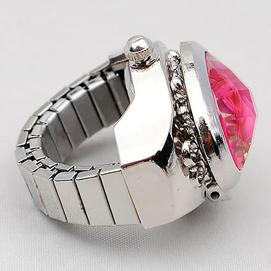Особенности: прикольные, часы-кольцо на палец, блестящее покрытие стразы, резинка