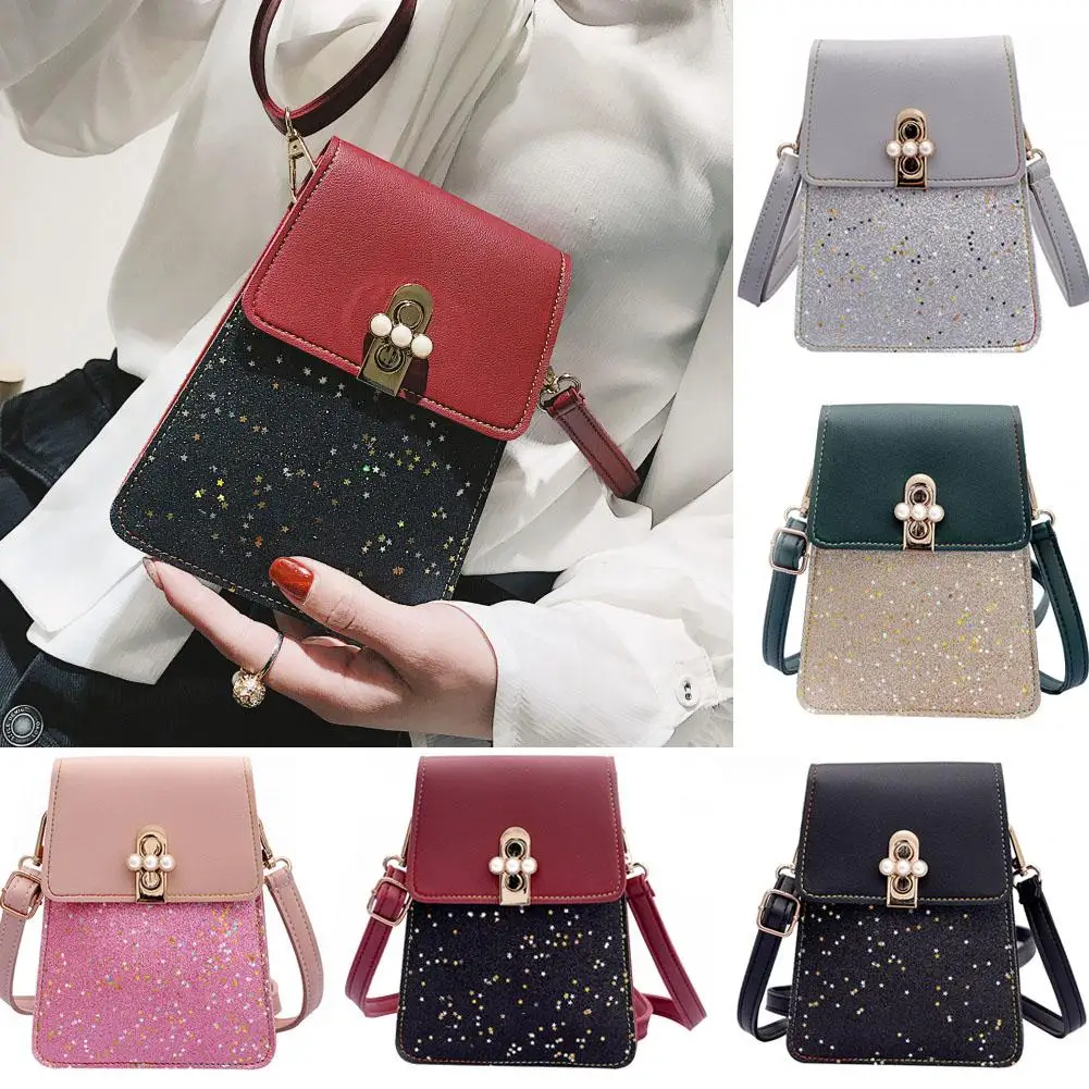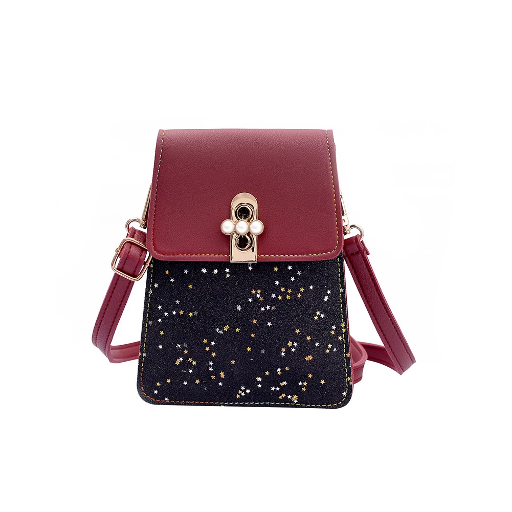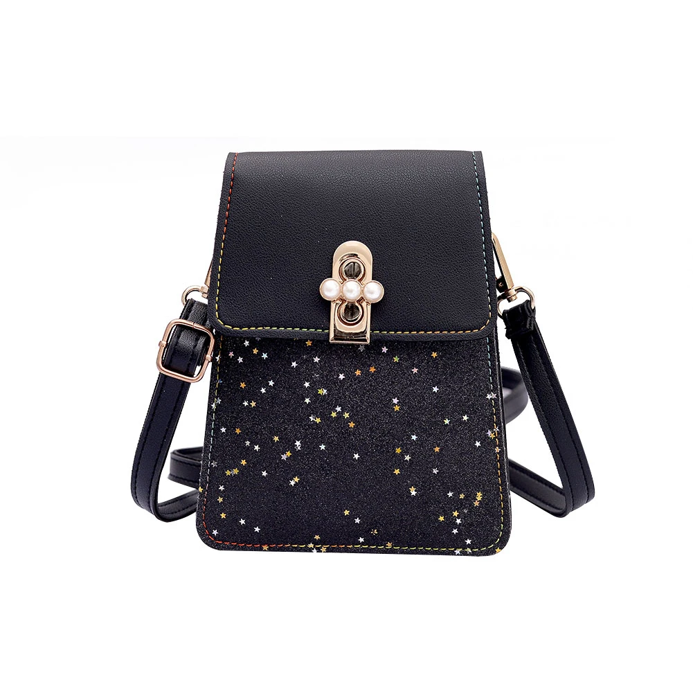 Мода звезда блестящая искусственная жемчужина через плечо Женская мини-сумка для телефона