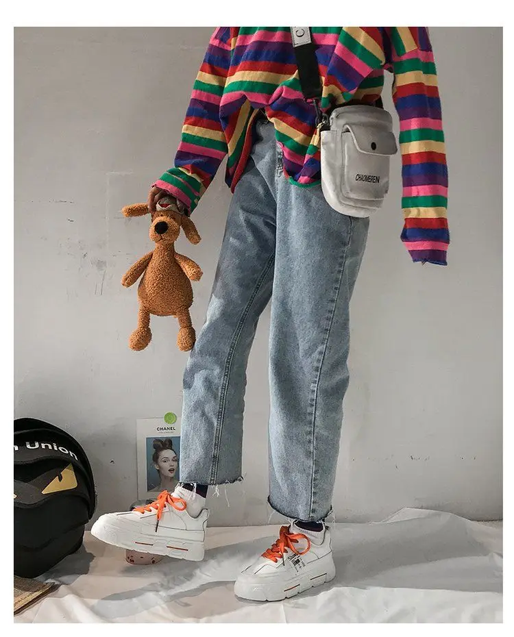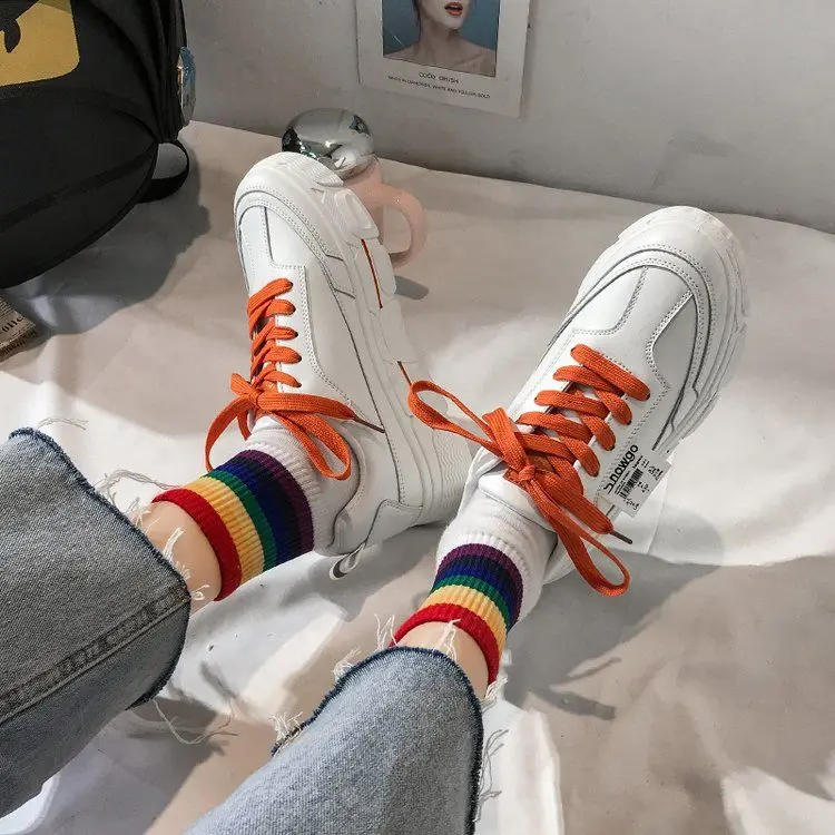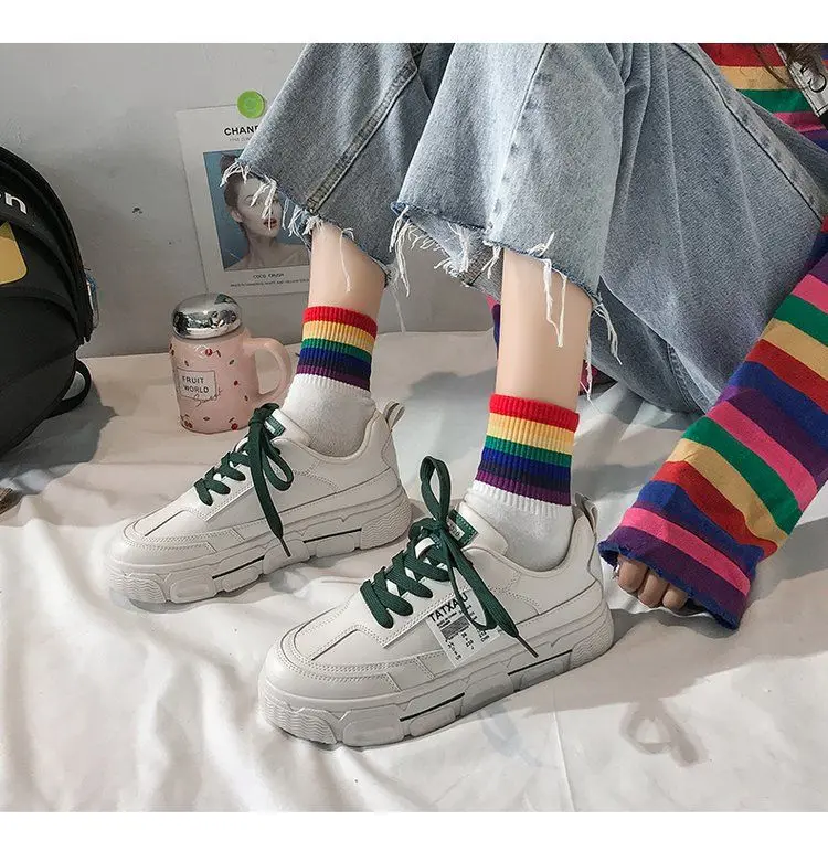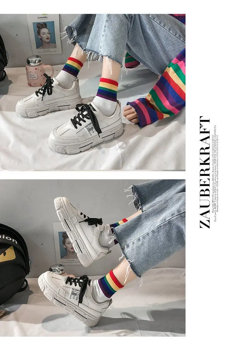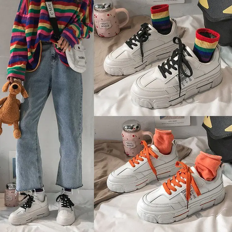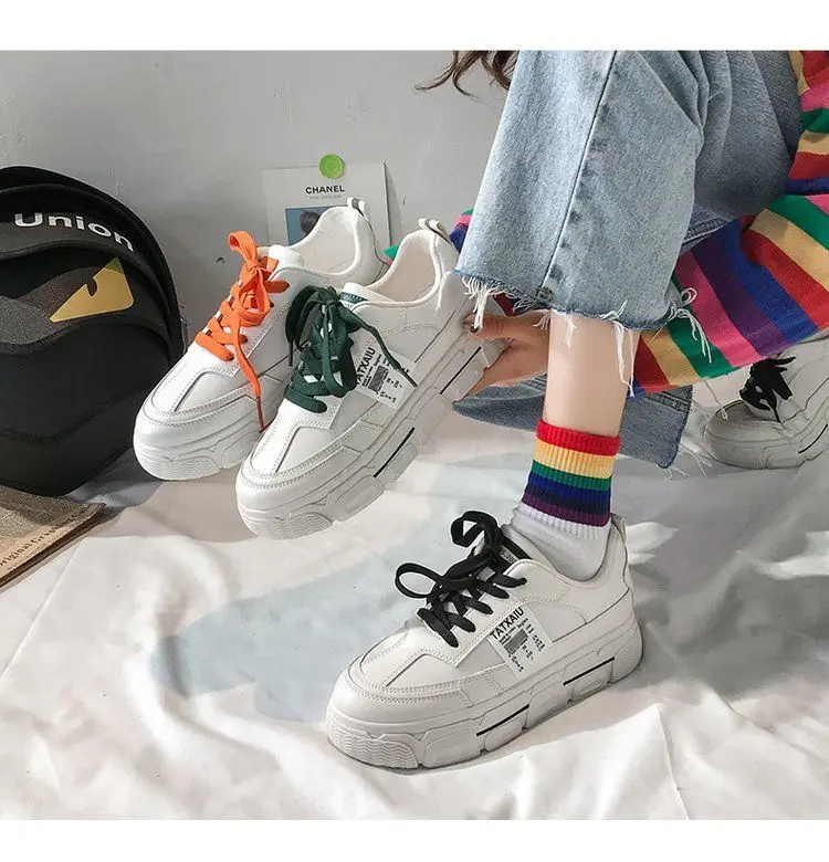 Женские кроссовки на платформе модные из искусственной кожи в Корейском стиле