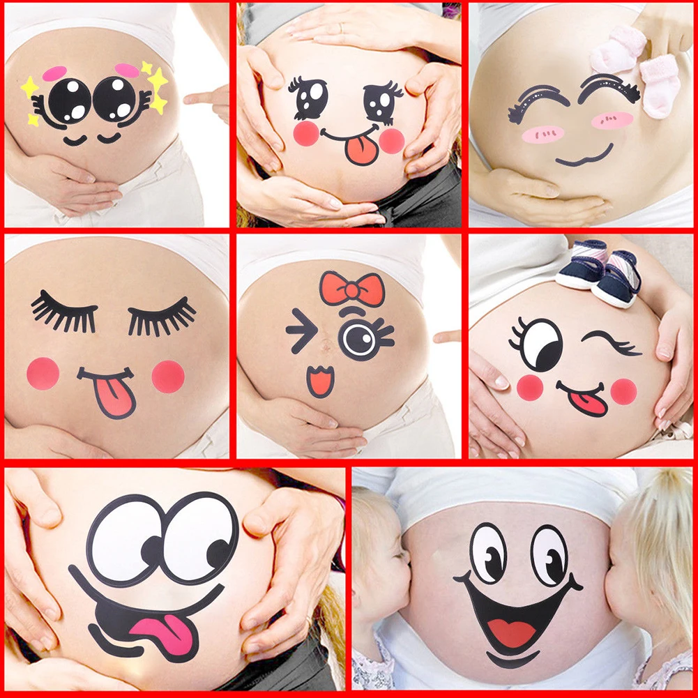 2 шт милые Мультяшные выражения беременных лицевой живот наклейка на живот фото реквизит