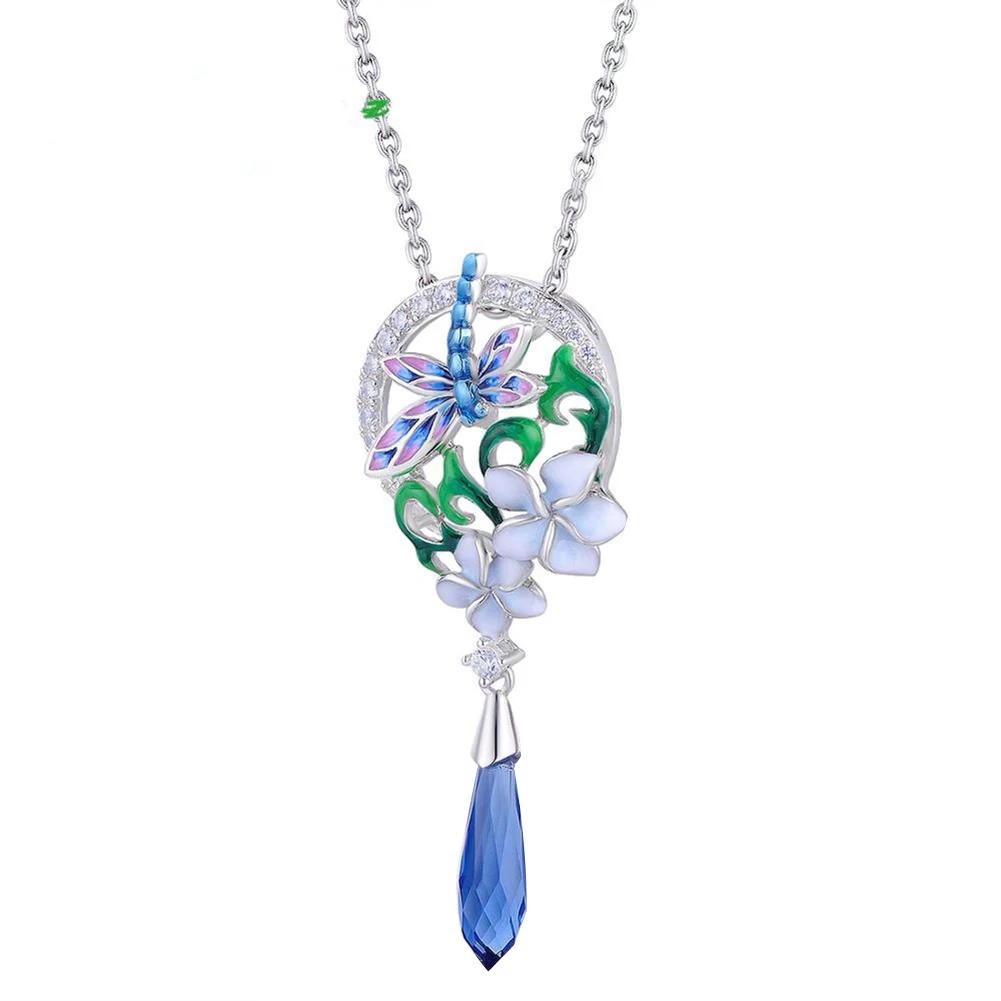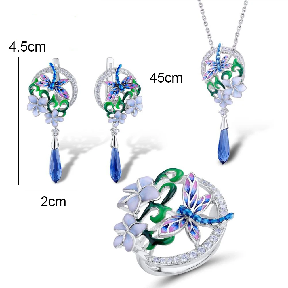 Женская эмаль цветок стрекоза Стразы кулон ожерелье серьги кольцо ювелирные изделия