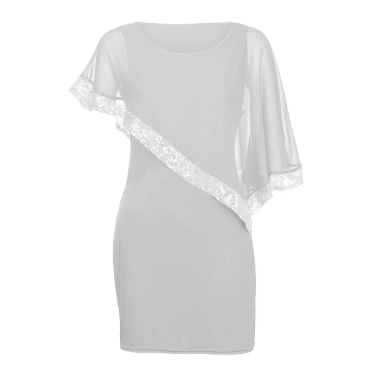 Женское платье без рукавов CIEMIILI белое подиумное с v образным вырезом и блестками