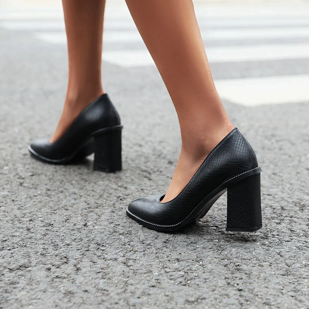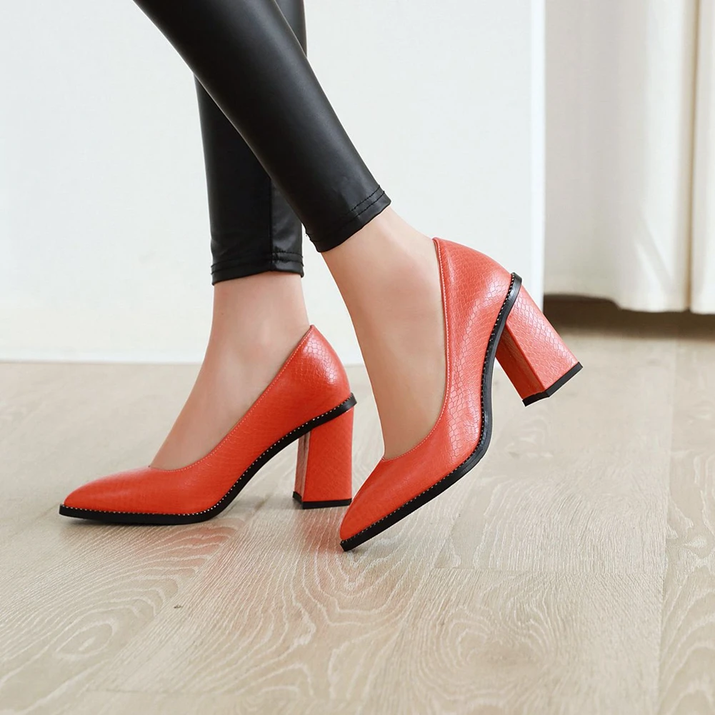 Свадебная обувь Женские тонкие туфли с острым носком на высоком толстом каблуке