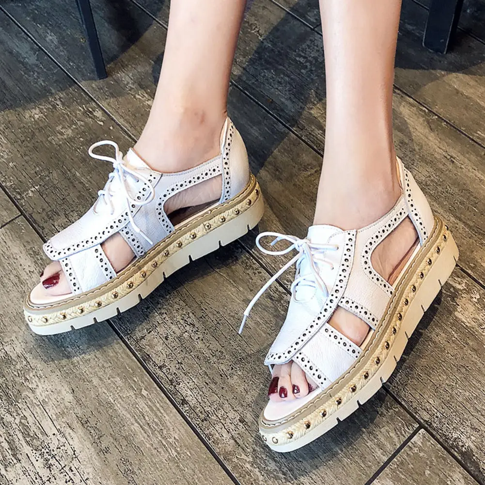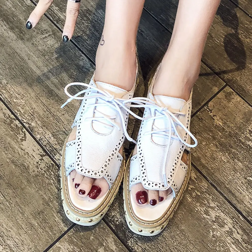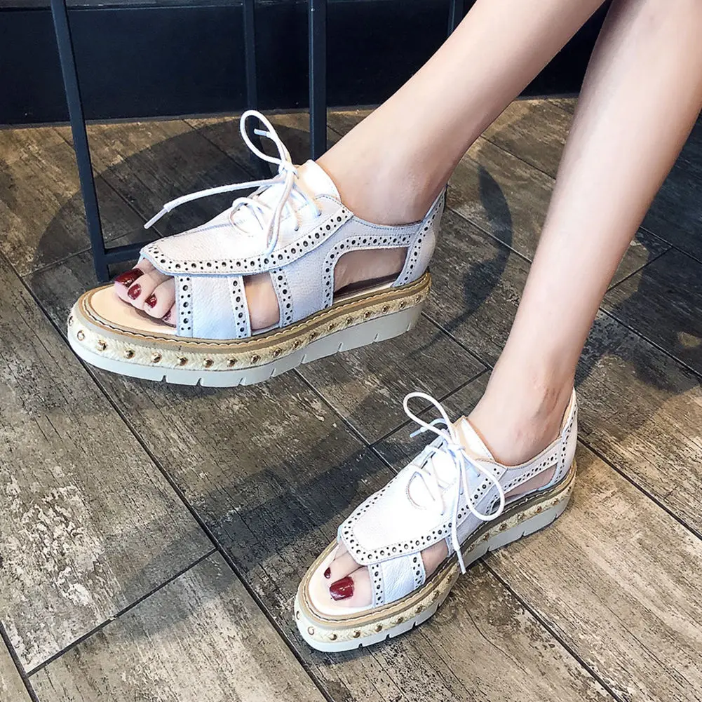 Сандалии LIHUAMAO женские с открытым носком босоножки на танкетке без застежки