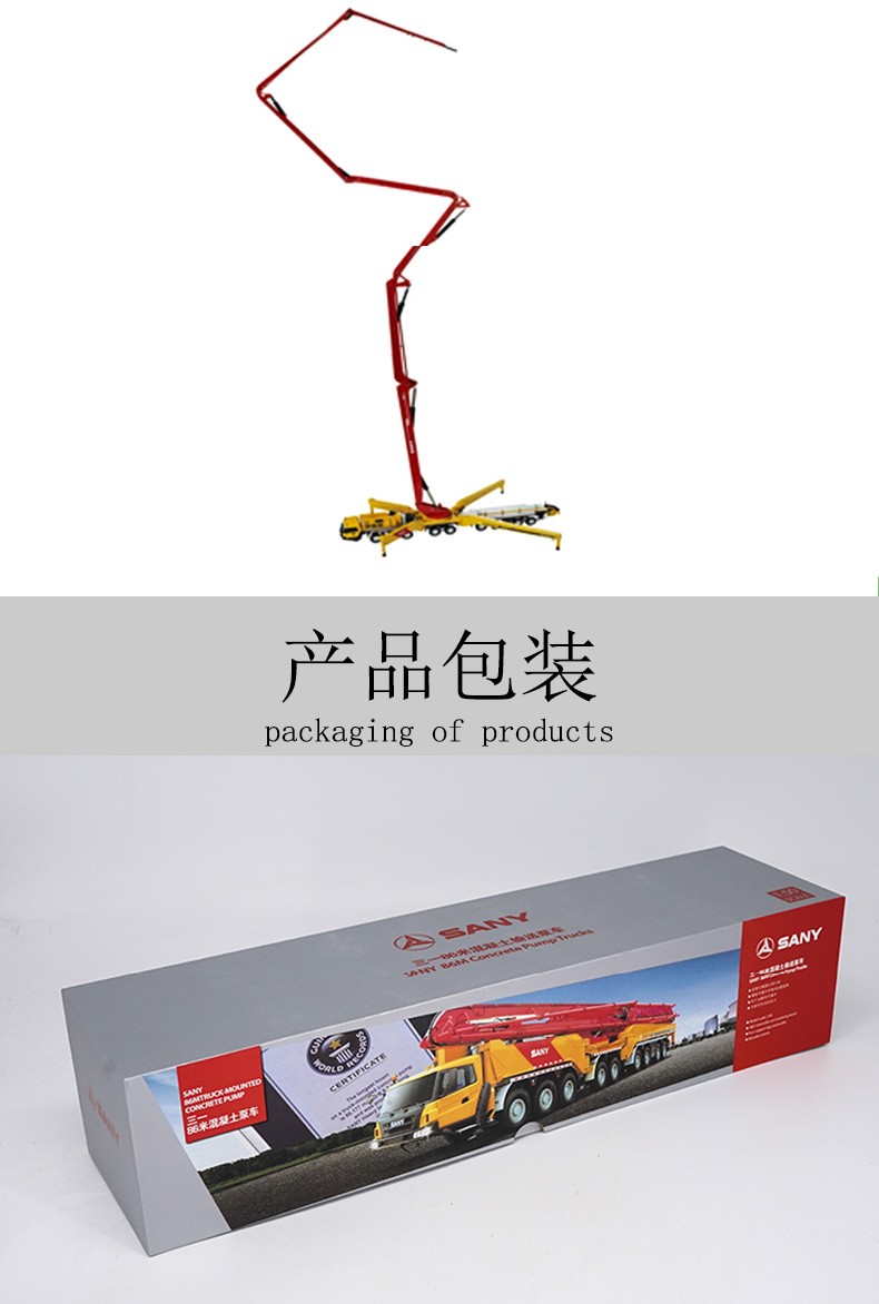 2020 оригинальная Коллекционная модель грузовика с бетононасосом 86 м 1:50 Sany, модель из сплава, Инженерная техника, литые игрушечные модели, украшение