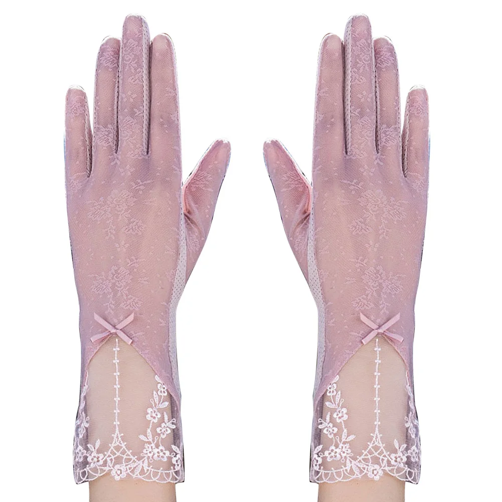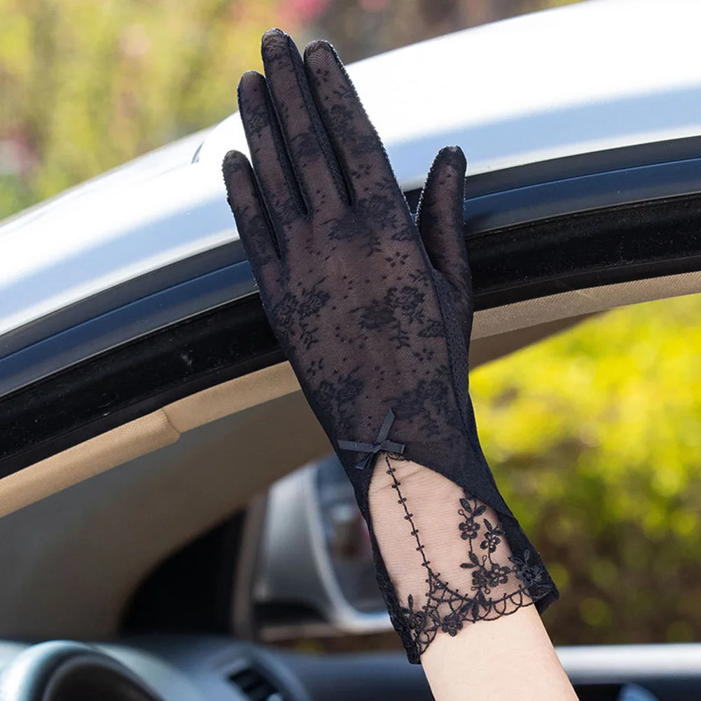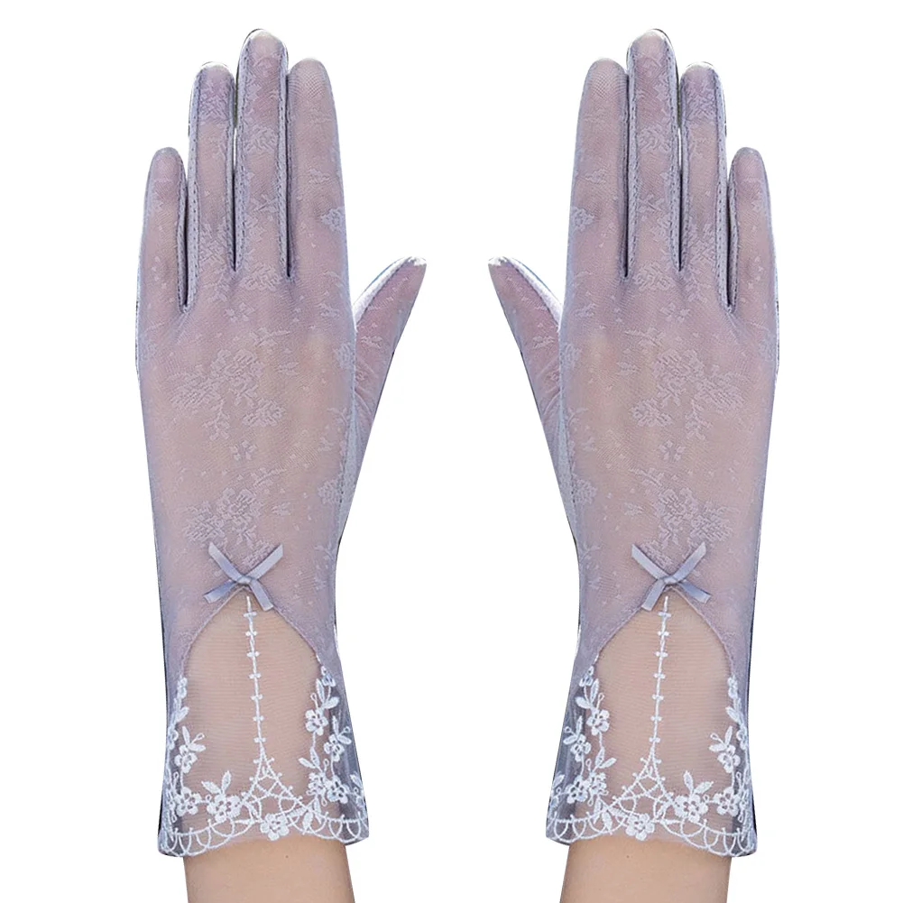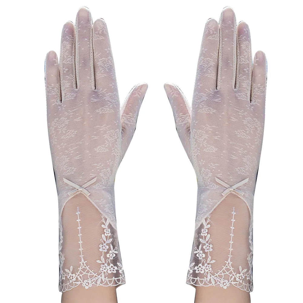 Женские прозрачные цветочные кружевные тонкие противоуф-перчатки для вождения с сенсорным экраном