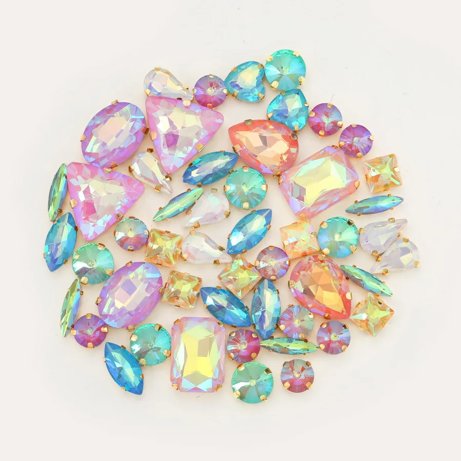 (8x13 мм капля, 7x15 мм маркиз, 4x15 мм маркиз, 10 мм Rivoli, 8 мм квадрат,)5x6 шт. в каждой.