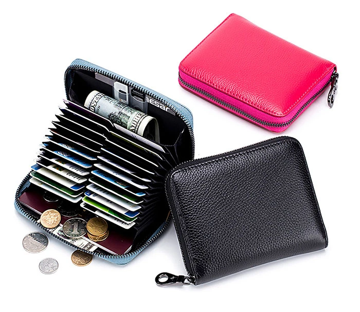 RFID Блокировка лаконичный дизайн унисекс кошелек гармошка 24 слота натуральная