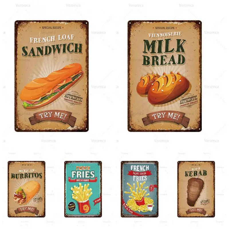 Металлический знак в виде гамбургера металлический винтажный жестяной для